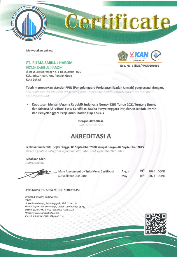 Biro perjalanan Haji & Umroh terbaik dengan predikat "A" dari Komite Akreditasi Nasional (KAN).